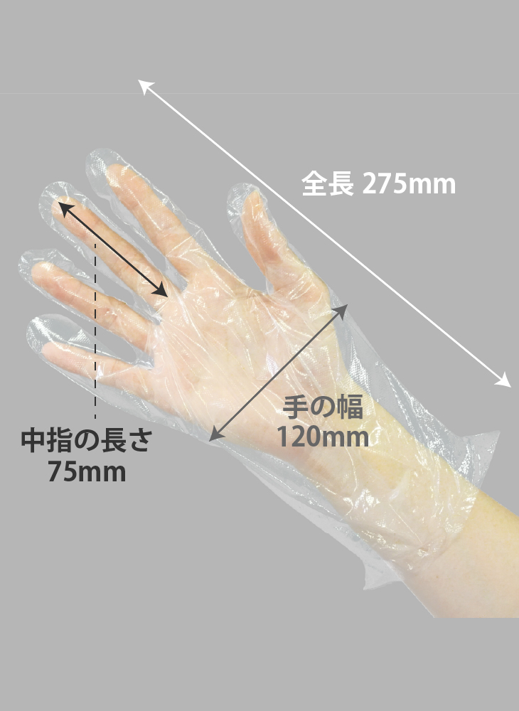 LLDPEを使用した使いきり手袋のSサイズです。外側にエンボス加工がされていています。左右兼用で1冊100枚入、全て両手で使用した場合は50組分になります。食品衛生法適合品になりますので、調理から衛生対策、毛染めなど幅広く使用できます。