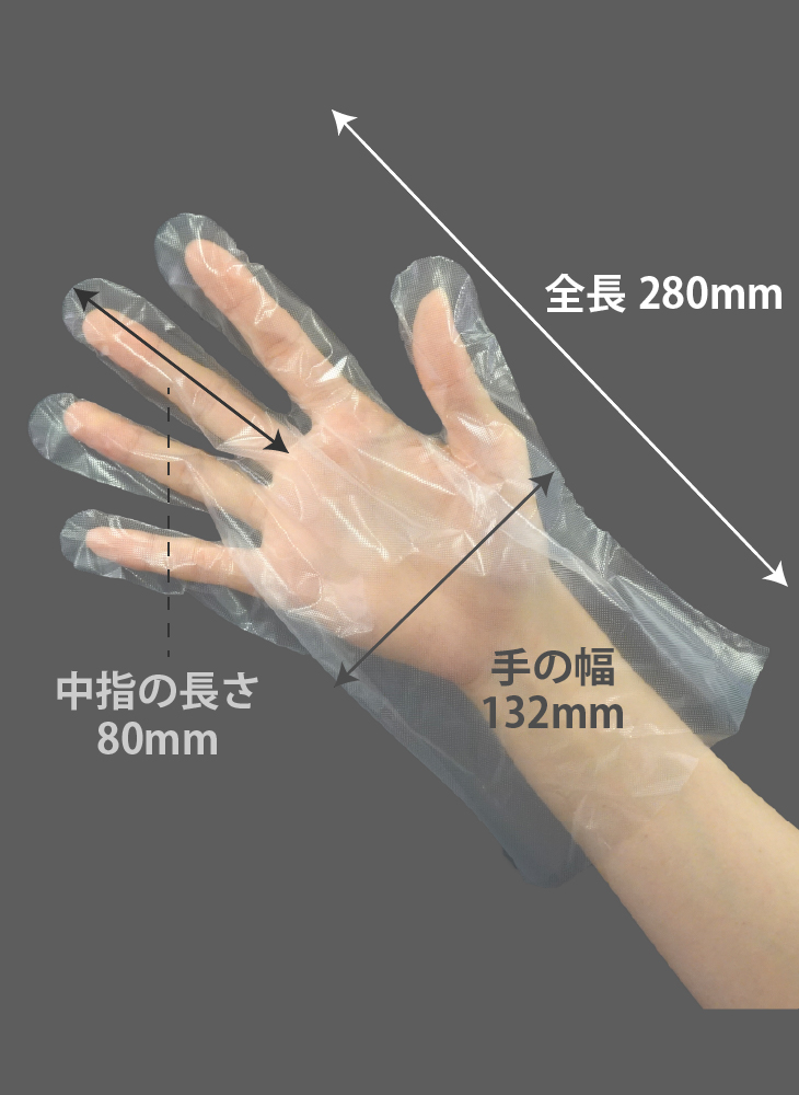 CPEを使用した使いきり手袋のMサイズです。外側にエンボス加工が施されています。LLDPEと比べて透明度は落ちますがサラっとした感触でスムーズに着用でき、長時間つけても汗でべとつきにくい手袋になります。左右兼用で1箱100枚入、全て両手で使用した場合は50組分になります。食品衛生法適合品で、調理や衛生対策、毛染めなど幅広く使用できます。