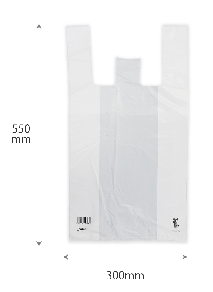 レジ袋(東日本45号/西日本45号)バイオマスプラスチックを25%使用し、無料配布対象になるレジ袋です。レジ袋本体にJANコード・プラマーク・バイオマスマークが印刷されています。※吊り下げて使用でき、1枚ずつちぎって使えます。