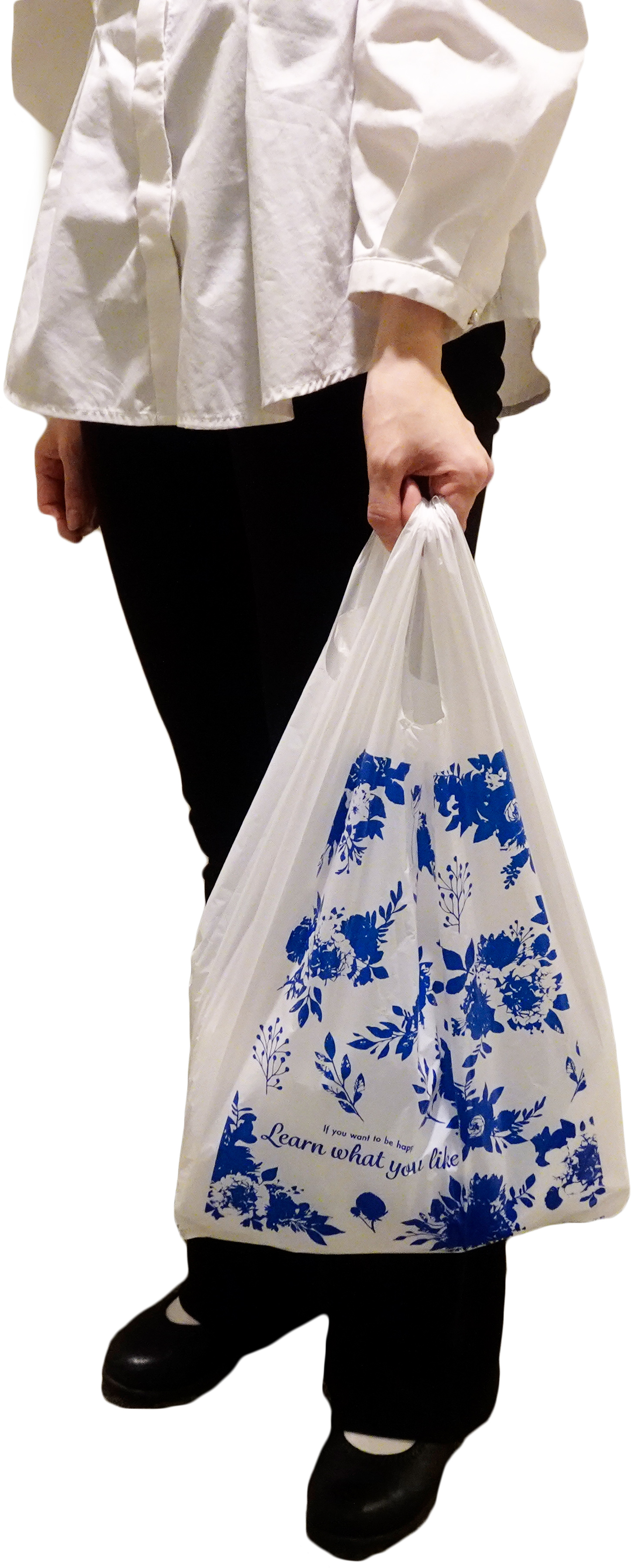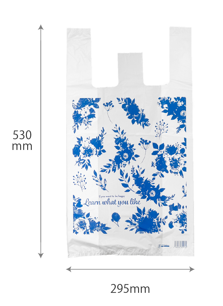 一枚一枚におしゃれな柄が印刷されたレジ袋(東日本45号/西日本45号)JANコードも印刷されているので、有料でのレジ袋販売の際にはレジ打ちの作業効率がアップ。資源プラスチックとして分別するためのプラマークも印刷されています。コンパクトなパッケージで収納も楽々。パッケージから取り出せば吊り下げて、1枚ずつちぎって使えます。