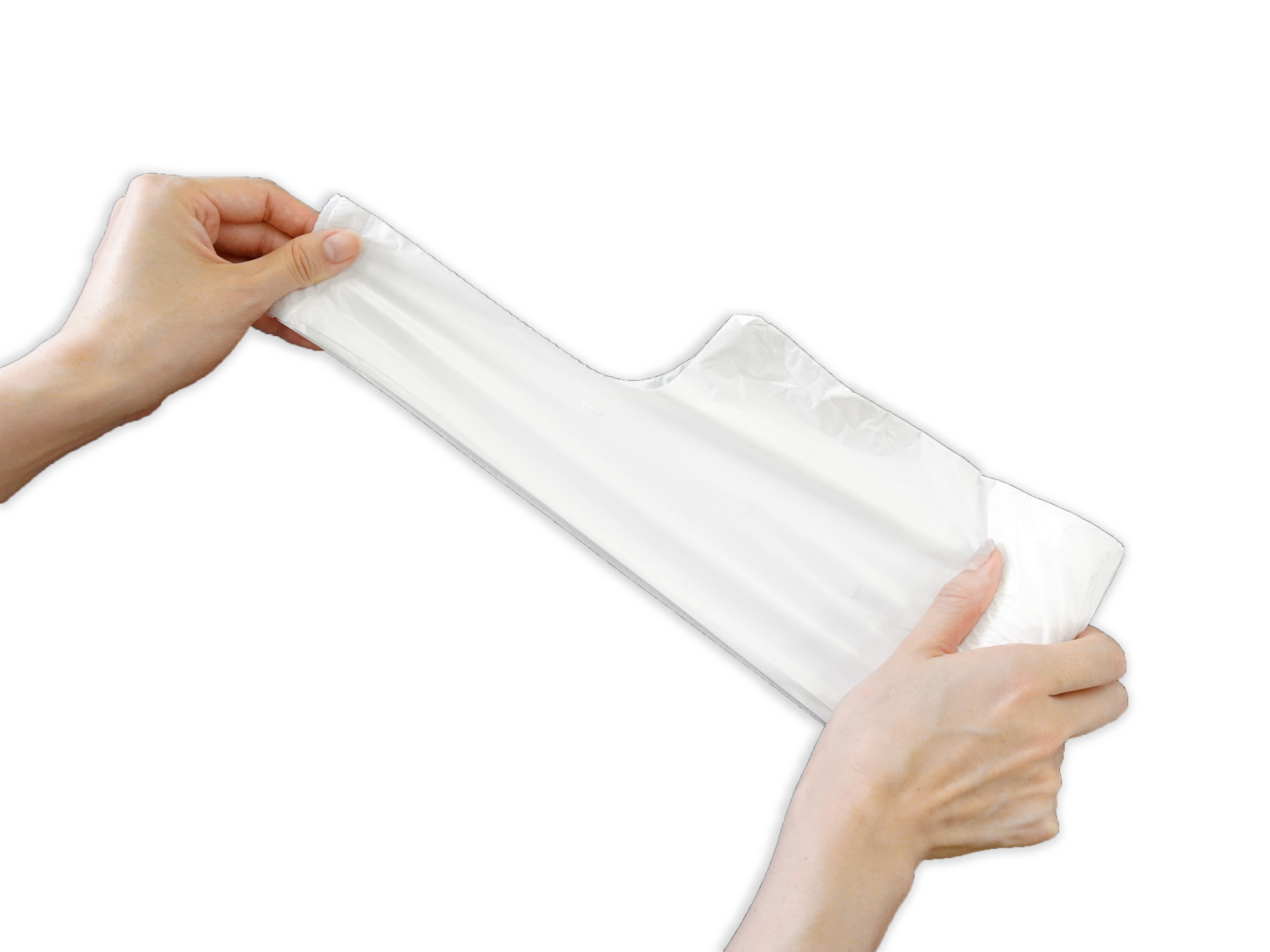 コンパクトなロール式のレジ袋で持ち運びに便利です。使用時は手で切り離すことができます。