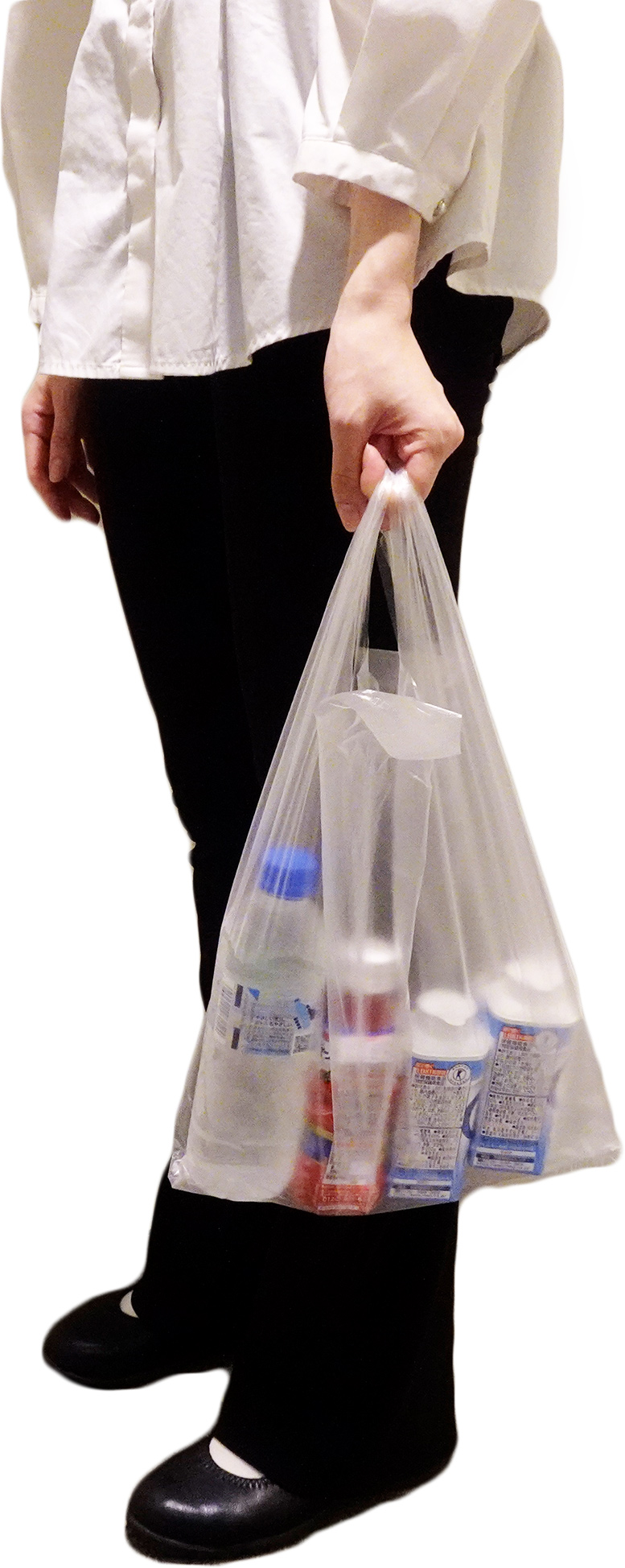 お買い物にもゴミ袋にも活用できるレジ袋。約10Lの容量です。