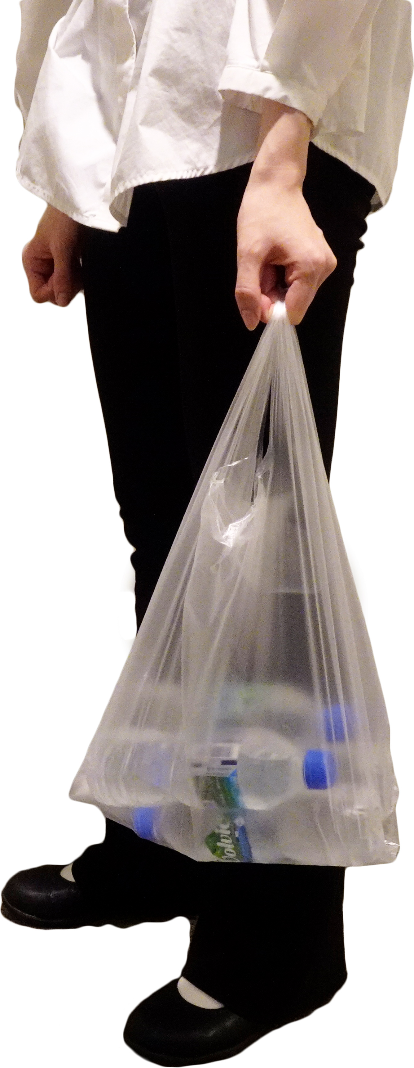お買い物にもゴミ袋にも活用できるレジ袋。約15Lの容量です。